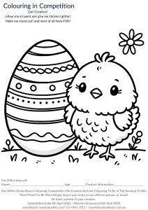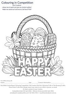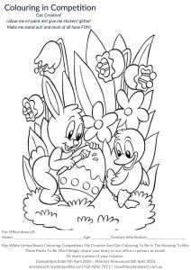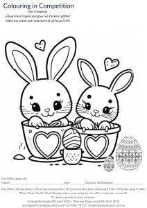 Colouring In – Simply send a photo of your entry to our Facebook messenger @rwuminabeach, or send us an email with your entry to uminabeach.nsw@raywhite.com or drop off at our office on West Street,